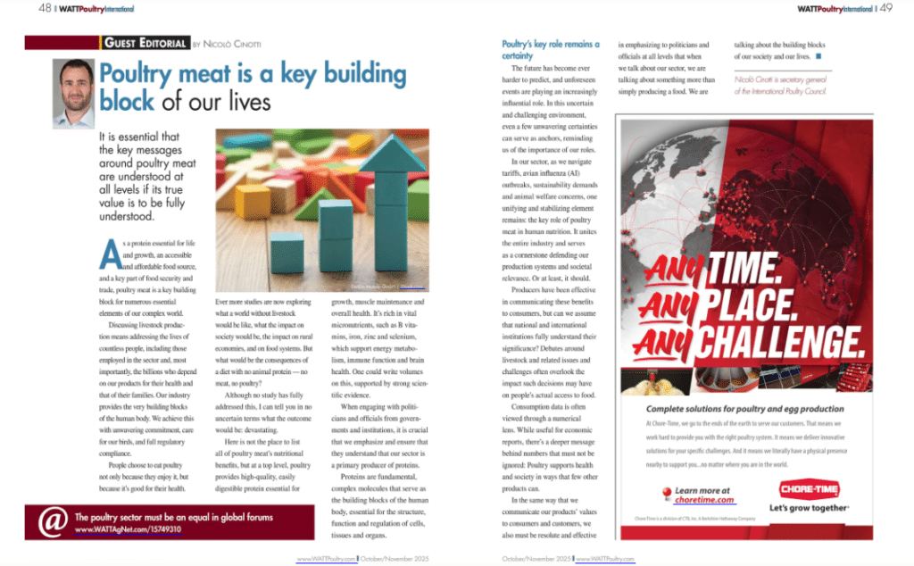 HOME MEMBERSHIP NEWS & RESOURCES ABOUT HOME MEMBERSHIP NEWS & RESOURCES ABOUT Linkedin LATEST NEWS AllIPCMembersEvents New member: BAADER October 23, 2025 Members Poultry International article – Poultry meat is a key building block of our lives October 21, 2025 IPC Rabobank’s Global Poultry Outlook Q4 2025 October 16, 2025 IPC Celebrating 20 Years of IPC: 2005–2025 October 7, 2025 Events FAO’s Sustainable Livestock Transformation Conference October 1, 2025 Events Poultry World article – Can regionalization secure poultry trade? September 30, 2025 IPC New member: CUPRA September 25, 2025 Members FAO Event: Tackling HPAI Together September 15, 2025 Events Sustainable Livestock Principles September 4, 2025 IPC RESOURCES & PUBLICATIONS GLOBAL DATA PLATFORM MACROECONOMIC INDICATORS REPORT INFOGRAPHICS ANTIMICROBIAL USE & STEWARSHIP PRINCIPLES - LONG FORM ANTIMICROBIAL USE & STEWARSHIP PRINCIPLES - OVERVIEW TRADE & POULTRY MEAT PRINCIPLES - OVERVIEW FOOD SAFETY PRINCIPLES - OVERVIEW POULTRY MEAT SECTOR ON SUSTAINABLE DEVELOPMENT SUSTAINABLE LIVESTOCK PRINCIPLES